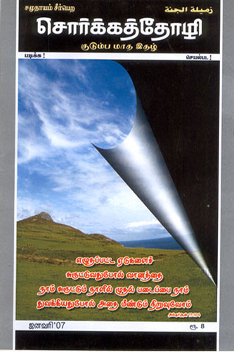 நம் உயிரினுமினிய சமுதாய மக்களுக்கு இஸ்லாத்தை அழகிய முறையில் விளக்கி நம் மக்களை நல்வழியில் செலுத்திட வேண்டும் என்கிற உயர்ந்த இலட்சியத்துடன் ௨௦௦௩ முஹ்டல் சொர்கத் தோழி குடும்ப மாத இதழ் வெளியிட்டு வருகிறோம். முற்றிலும் சமுதாய மக்கள் பயன்பெற்று சிறந்திடும் வகையிலான அறிவுபூர்வமான விஷயங்களை தாங்கி ஒவ்வொரு மாதமும் அழகிய முறையில் இஸ்லாத்தை பாடம் நடத்தி கொண்டிருக்கிறது. வியாபார நோக்கமின்றி, படிக்கும் மக்களை சிந்தித்து செயல்பட வைக்கும் நோக்குடன் முகவரிகளை வாங்கி கொண்டு இதழ்களை அனுப்பி வருகிறோம். இதுvum முறையான கல்வியை போதிப்பதால் நிரந்தர தர்மத்தையே சேரும்! மாதந்தோறும் இதற்க்கு பெருந்தொகை செலவாகிறது. வள்ளல் பெருமக்கள் வாரி வழங்கி நற்பேறு பெறுங்கள்.